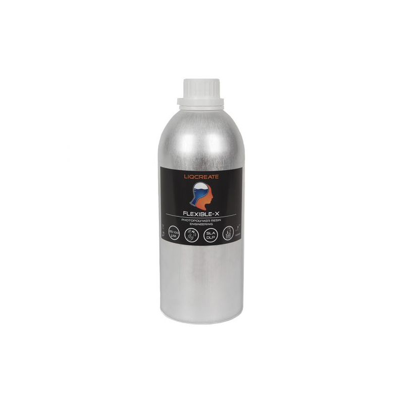 Liqcreate DLP LCD SLA Flexible-X is compatibel met open 3D-printers , MSLA en in het bereik van 385 tot 420 nm. Dankzij de lage hardheid van 55 Shore A en een rek tot 160% is het ideaal voor het maken van zachte en elastische onderdelen voor industrieel gebruik.