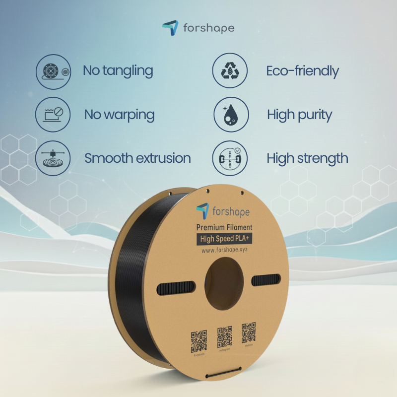 En plus de sa vitesse exceptionnelle, le PLA+ High-Speed Forshape se distingue par sa précision dimensionnelle et sa stabilité thermique. Même lors d'impressions rapides, le filament minimise les variations liées à l'expansion et à la contraction, garantissant des modèles aux contours nets et aux détails fidèles. Cette combinaison de fluidité et de stabilité permet de produire des pièces à la fois esthétiques et fonctionnelles, adaptées à une grande variété de projets 3D.