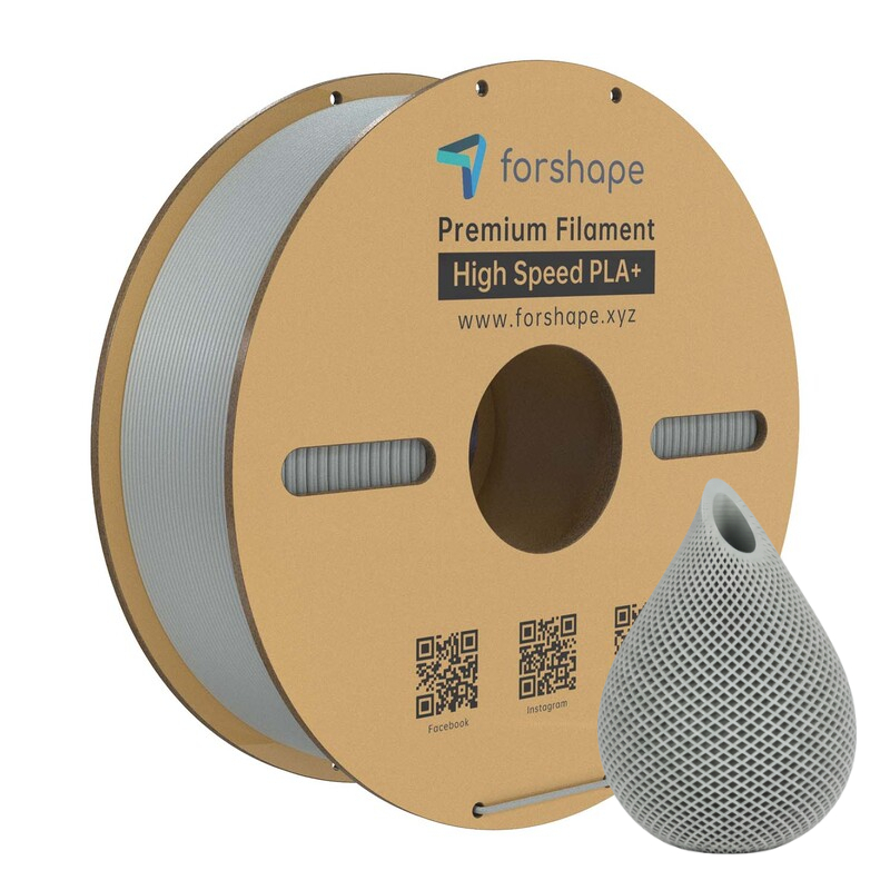 Le filament High-Speed PLA+ Forshape Gris (PLA haute vitesse) permet des impressions à une vitesse pouvant atteindre 600 mm/s grâce à sa formulation unique combinant haute fluidité et refroidissement rapide.