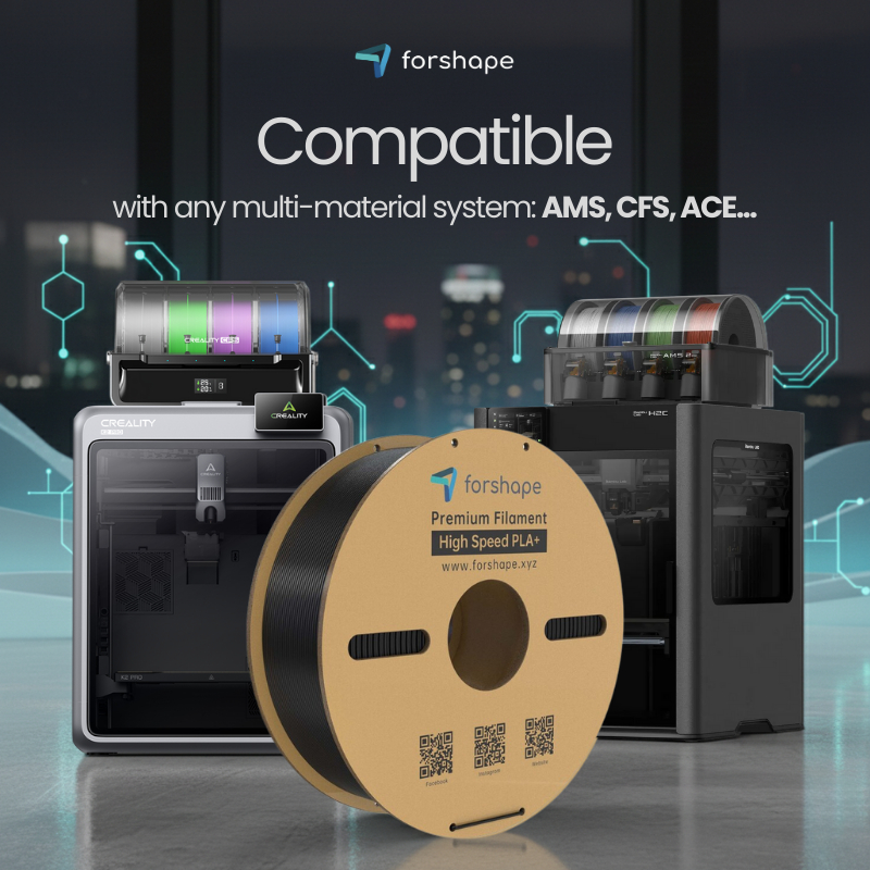 En plus de sa vitesse exceptionnelle, le PLA+ High-Speed Forshape se distingue par sa précision dimensionnelle et sa stabilité thermique. Même lors d'impressions rapides, le filament minimise les variations liées à l'expansion et à la contraction, garantissant des modèles aux contours nets et aux détails fidèles. Cette combinaison de fluidité et de stabilité permet de produire des pièces à la fois esthétiques et fonctionnelles, adaptées à une grande variété de projets 3D.
