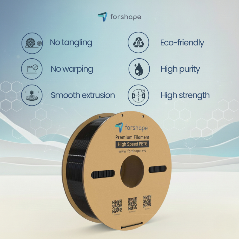 Impression rapide et fluide : Le High-Speed PETG Forshape a été développé pour supporter des vitesses d’impression élevées, tout en maintenant un dépôt de filament constant et sans bavures. Sa viscosité maîtrisée permet d’éviter les blocages dans l’extrudeur, garantissant des impressions continues et fiables même sur des modèles complexes. Cette caractéristique réduit significativement les temps de production et augmente l’efficacité de vos sessions d’impression.