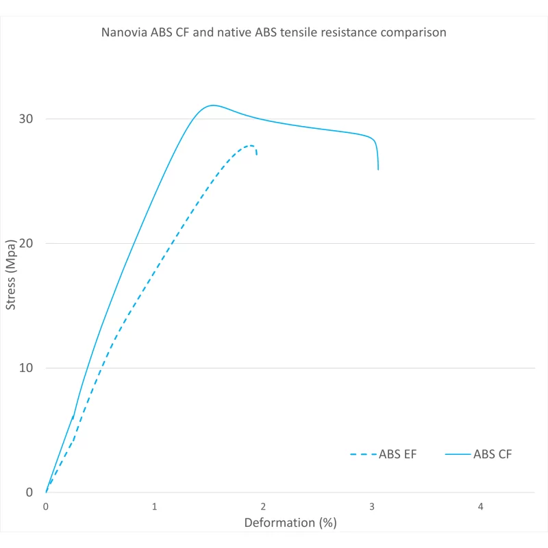 Le filament Nanovia ABS-CF est un fil 3D composé d'ABS et de fibres de carbone. L'ABS étant très répandu dans l'industrie pour la fabrication de pièces nécessitant de fortes propriétés mécaniques et thermiques.