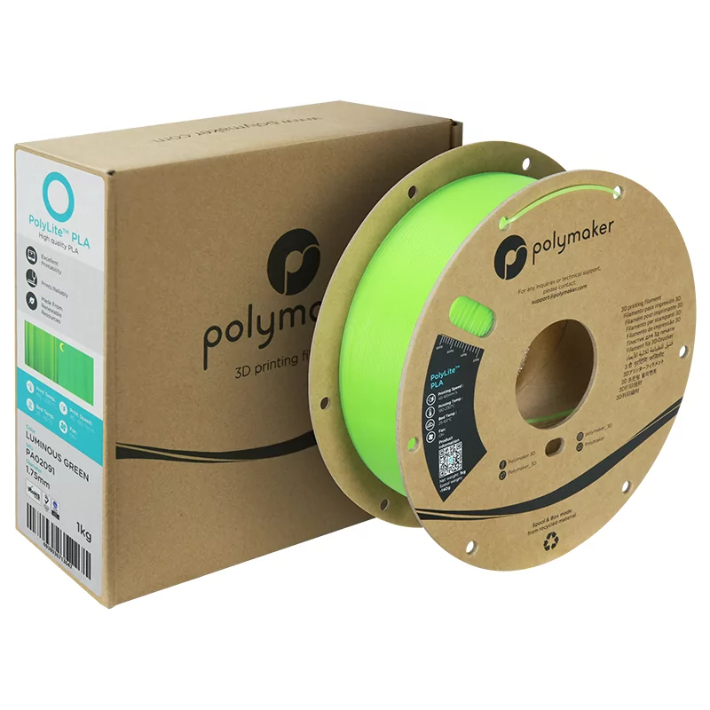 Haut niveau de qualité : Polymaker assurant un niveau de contrôle qualité complet et rigoureux, le PolyLite PLA Luminous Vert assure une qualité optimale constante.
