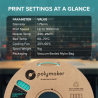 Conçu pour remplacer le PolyLite PETG, ce nouveau filament améliore la vitesse d'impression sans compromis sur la qualité. Il permet d’imprimer jusqu’à 300 mm/s (et jusqu’à 500 mm/s avec hotend high-flow) tout en conservant une grande stabilité dimensionnelle.