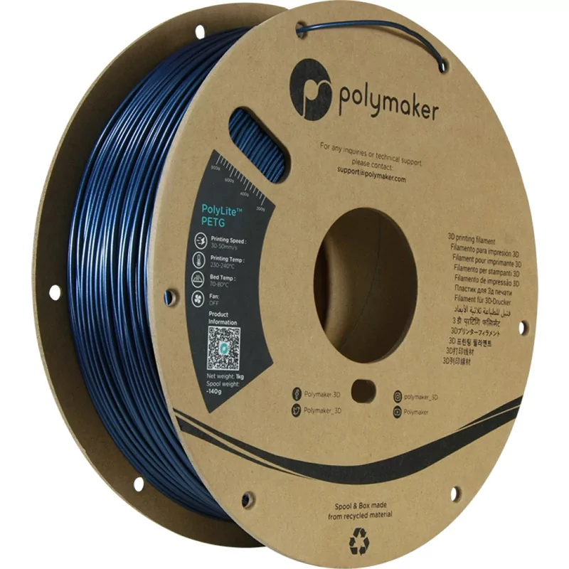 Le PolyLite ™ PETG Bleu foncé est conçu avec les meilleures matières premières pour obtenir des propriétés mécaniques poussées et une très haute qualité. Sa légère flexibilité rend ce PETG idéal pour réaliser des pièces plus fonctionnelles qu'avec un PLA et légèrement plus résistantes à la chaleur (81°).