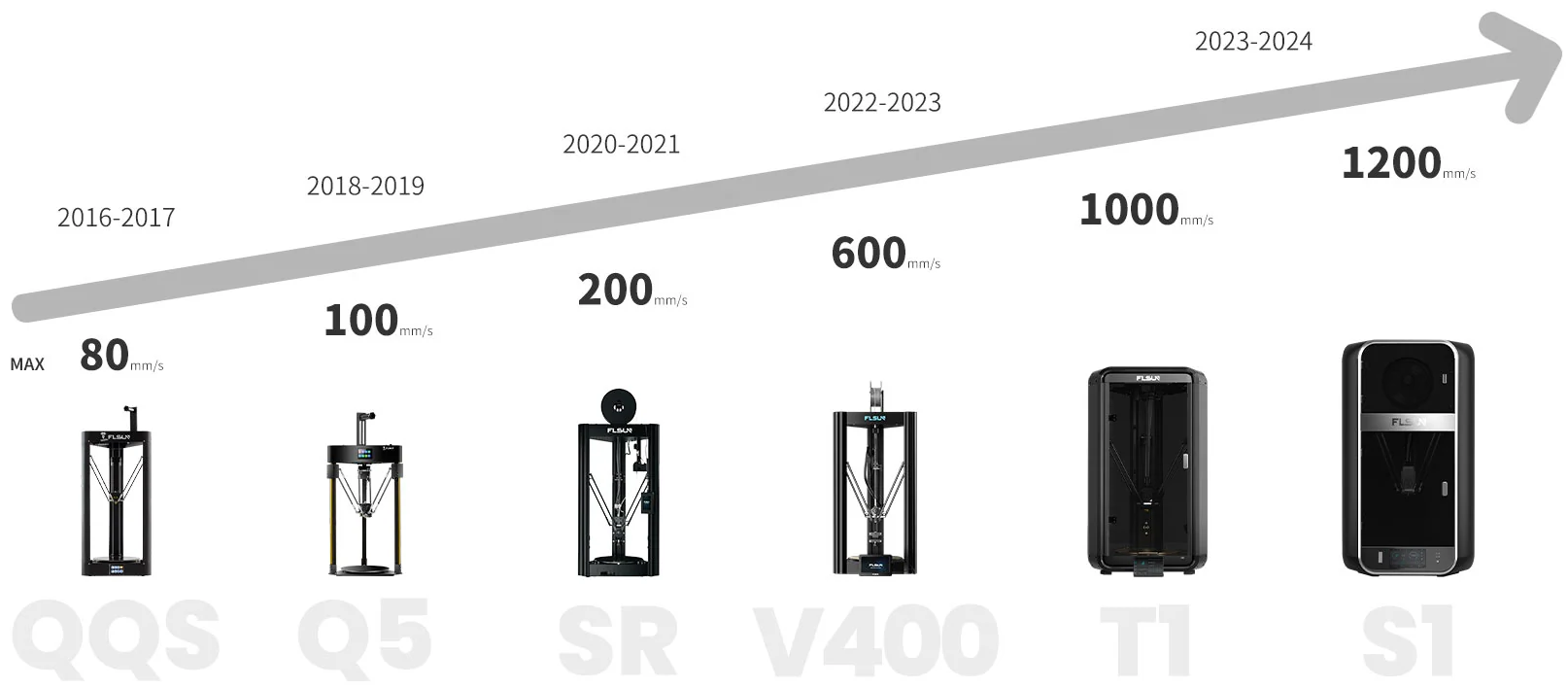 L'imprimante 3D FLSUN S1 est dotée d'une vitesse d'impression exceptionnelle de 1200 mm/s, surpassant ainsi la V400 de deux fois.