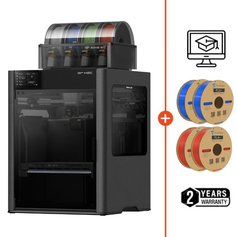 Le H2C Combo est livré avec le système AMS 2 Pro, assurant un changement de filament entièrement automatisé. L'intelligence du Vortek combinée à l'AMS permet d'utiliser jusqu'à sept sources de filament.