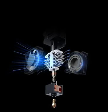 Heatbreak en alliage de titane : Faible conductivité thermique pour bloquer le flux de chaleur. Capable de produire une extrusion jusqu'à 300℃. Dissipateur thermique ondulé : 2,5 fois la surface qui est rapidement refroidie par air par un ventilateur axial silencieux.