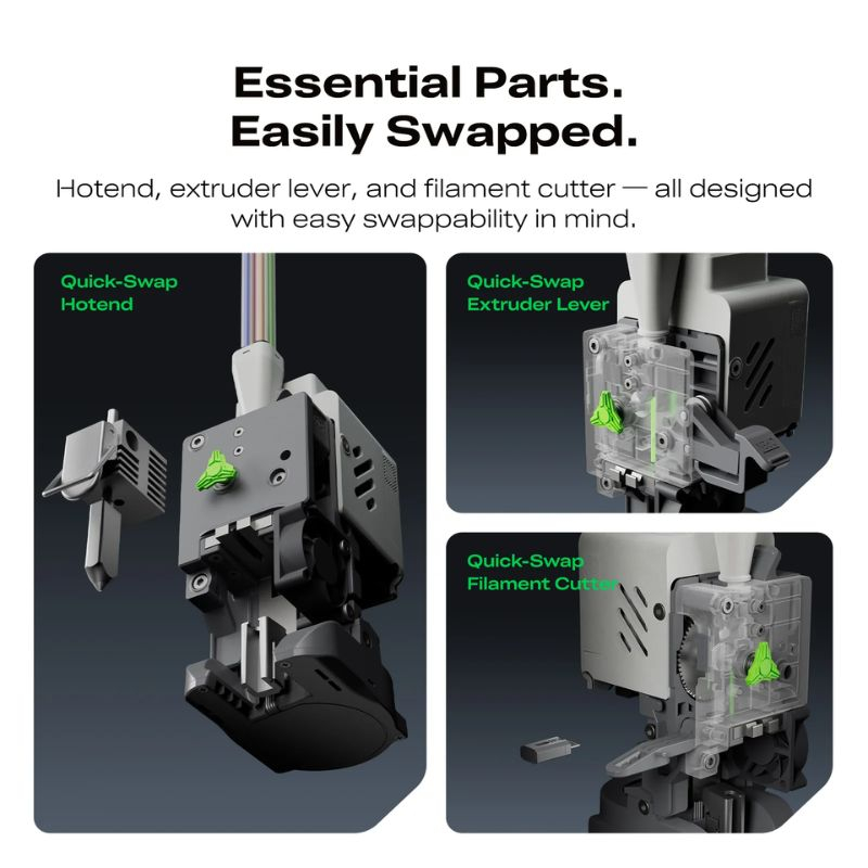 La buse se remplace en seulement cinq secondes, sans outil. La Creality SPARKX i7 Color Combo s’adapte facilement aux impressions détaillées ou aux impressions rapides selon le diamètre choisi.