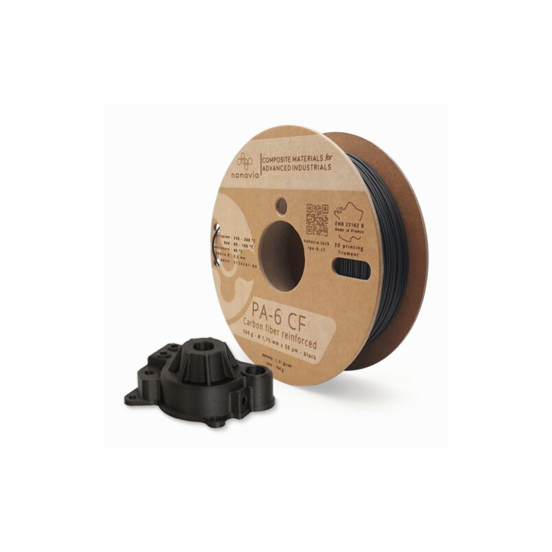 Le Nanovia PA-6 CF - 1.75mm - 500 g est un filament nylon chargé en fibres de carbone conçu pour l’impression 3D professionnelle. Ses fibres permettent une réduction du retrait, une impression plus rapide et une résistance mécanique accrue.