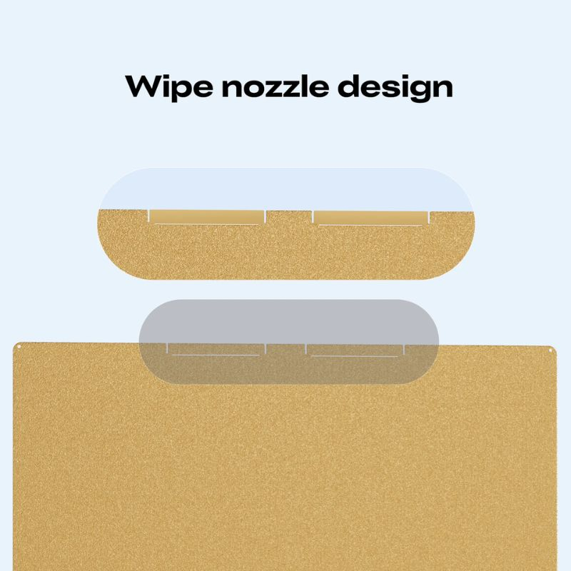 Le plateau est également équipé d’un design “wipe nozzle” qui nettoie les résidus de buse avant impression, garantissant une première couche propre et uniforme.