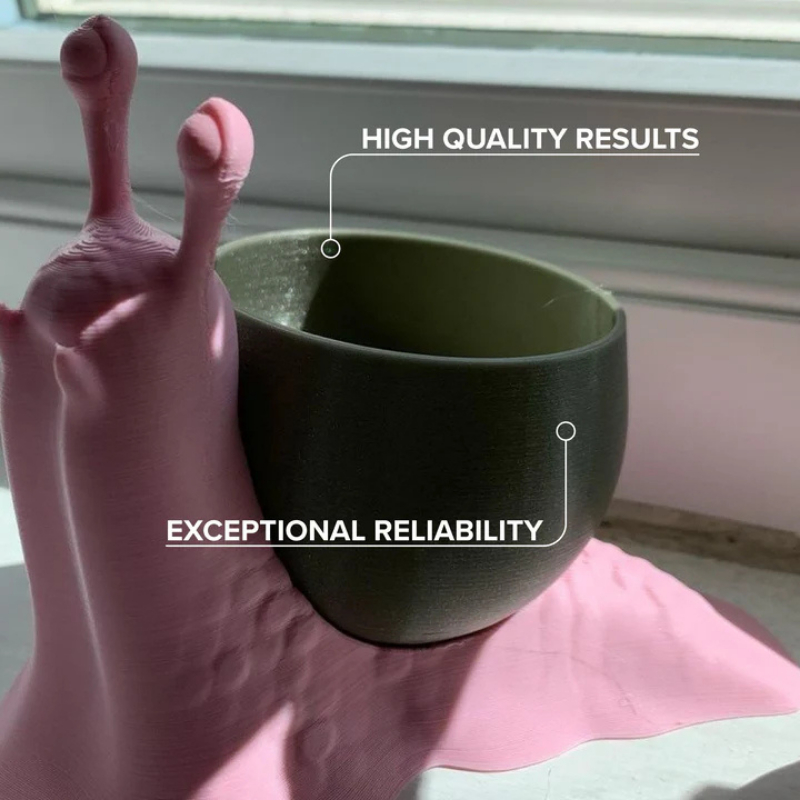 Surface lisse et brillante : La formulation du filament permet d’obtenir une finition homogène et soyeuse. Chaque couche se dépose avec précision, ce qui rend ce filament idéal pour les objets décoratifs, les prototypes esthétiques et les maquettes nécessitant une présentation soignée.