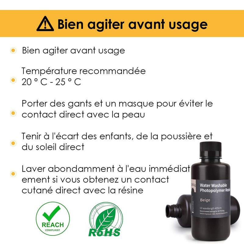 Caractéristiques de Résine Lavable à l'eau Beige Elegoo - 1000 ml