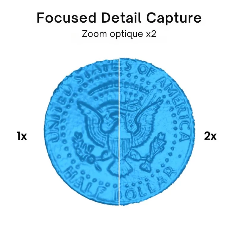 Le POP 3 Plus bénéficie d’un zoom optique 2× permettant de capturer plus précisément les textures et microdétails.