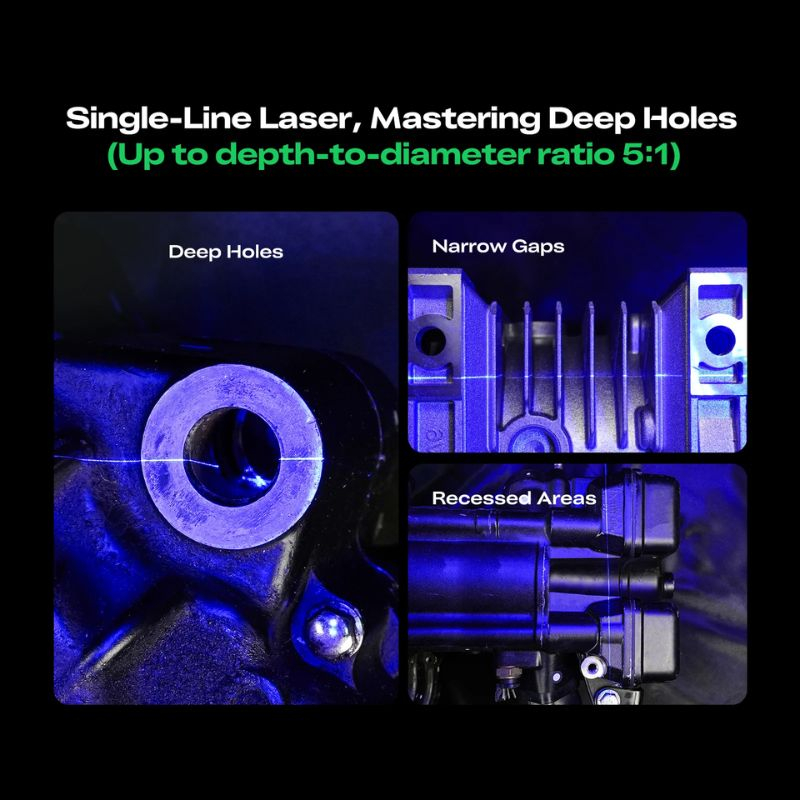 Capture des données précises même avec un ratio profondeur/diamètre jusqu’à 5:1, pour un rendu complet des objets mécaniques.