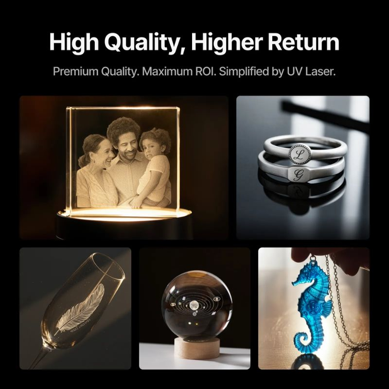 Que ce soit pour la joaillerie, le prototypage ou le marquage industriel, ce graveur laser UV offre une solution complète pour les ateliers professionnels exigeants et les productions de haute qualité.