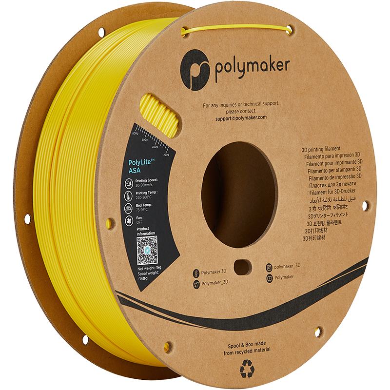 De Polymaker Polylite ASA Geel is een filament met uitstekende mechanische eigenschappen. UV-bestendig en bestand tegen temperaturen tot 105,3°C, ideaal voor buitentoepassingen.