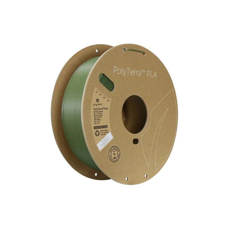 Het milieuvriendelijke PLA-filament PolyTerra Dual Donkergroen en Bruin is ontwikkeld door Polymaker met de techniek "Fully Bio Compound (FBC)", een combinatie van PLA (biologisch afbreekbaar polymeer op basis van maïs-, bieten- en tarwezetmeel) en organische mineralen.