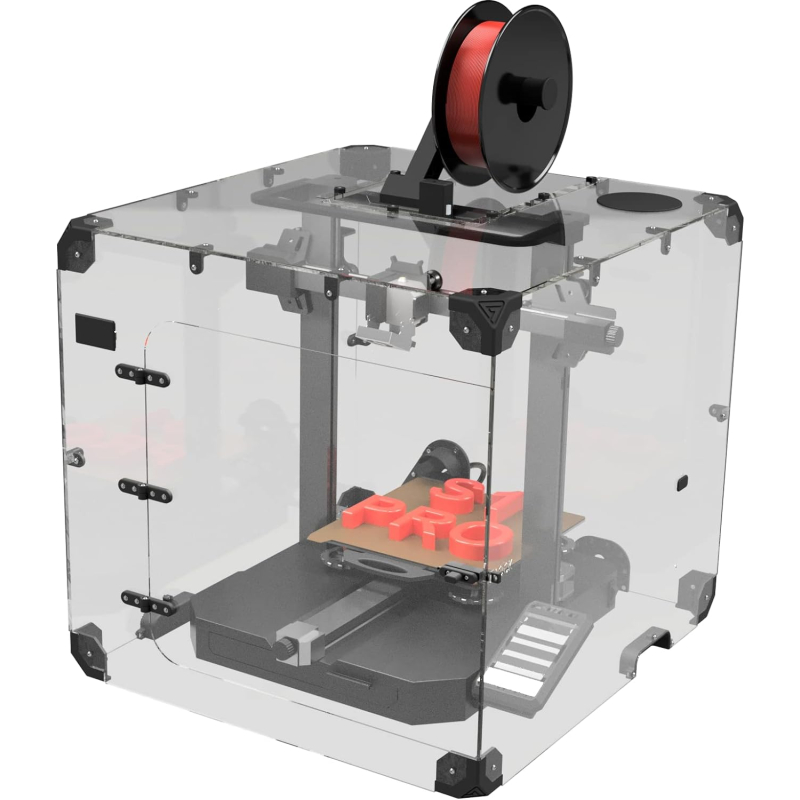 Deze behuizing vermindert het geluid aanzienlijk en de geur die tijdens het printen vrijkomt en biedt maximale veiligheid! Het kan worden uitgerust met een slot om toegang tot het printgebied te voorkomen, ideaal voor het gebruiken van je 3D printer in openbare ruimtes.