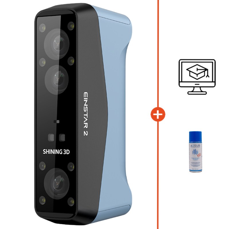 De Shining 3D Einstar 2 is een draagbare hybride 3D-scanner die blauwe laser en IR VCSEL combineert voor snelle en nauwkeurige scans. Compact en licht van gewicht, het legt fijne details, moeilijke oppervlakken en realistische kleuren vast. De ingebouwde batterij maakt draadloos gebruik tot 3 uur mogelijk, terwijl de EXStar Hub software de nabewerking en integratie in professionele workflows vereenvoudigt.
