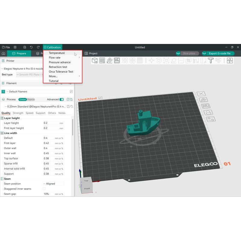 Om een optimale afdruk te garanderen, OrcaSlicer biedt aan geavanceerde kalibratiegereedschappen, zoals geavanceerde druk- en terugtrekkingstests. Deze hulpmiddelen maken het mogelijk om de afdrukparameters nauwkeurig aan te passen om consistente resultaten te verkrijgen, afdrukfouten te verminderen en de kwaliteit van de afwerking te verbeteren. Het gebruik van deze functies zorgt voor stabiele prestaties op de lange termijn.