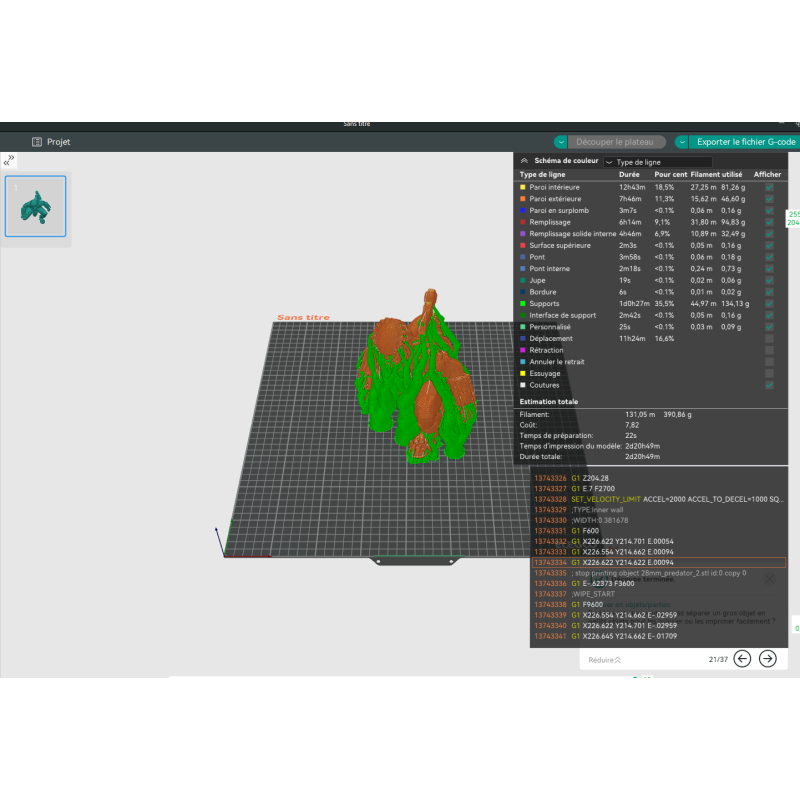 Je m'excuse, mais votre message semble incomplet. Pourriez-vous le reformuler ou m'en donner plus de détails s'il vous plaît?Orca Slicer In een professionele context kan het aantal afsteliteraties aanzienlijk worden verminderd, met name dankzij automatische kalibraties en de stabiliteit van het hulpmiddel. In vergelijking met Bambu Studio of PrusaSlicer is de beheersing van complexe geometrieën beter en zijn de snijtijden korter. De actieve gemeenschap zorgt voor constante aanpasbaarheid. Er zijn nog enkele beperkingen (bijvoorbeeld het beheer van geavanceerde booleaanse functies), maar het hulpmiddel is al volwassen voor semi-industrieel gebruik.