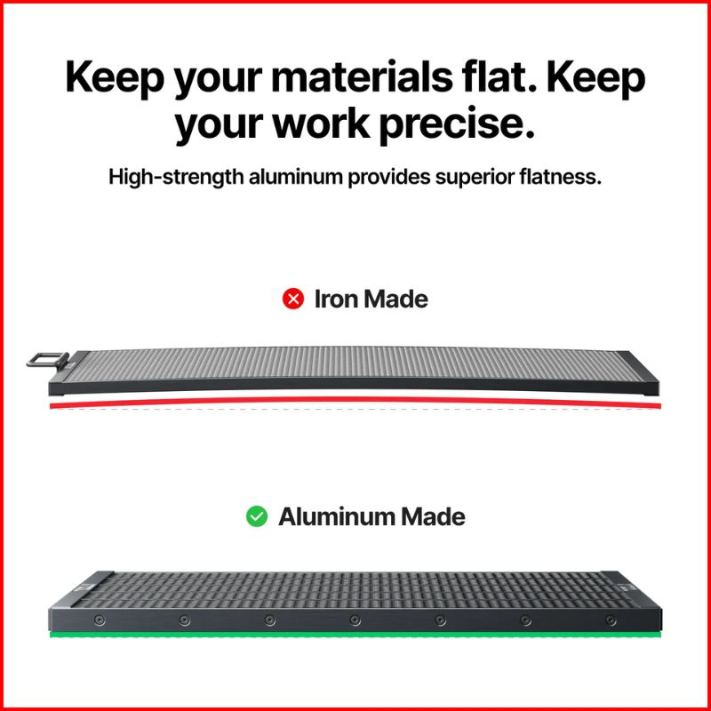 Gemaakt van aluminium is het paneel licht, stijf en corrosiebestendig. Het is bestand tegen thermische belasting tijdens lange snijsessies en behoudt een uitstekende vlakheid. De perfecte compatibiliteit met de xTool P3 zorgt voor een snelle installatie zonder afstelling.
