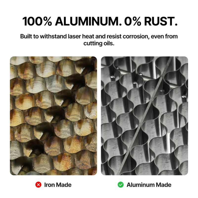 Het aluminium honingraatpaneel voor xTool P3 is een speciaal werkoppervlak voor lasersnijden. Het bevordert de luchtcirculatie onder het materiaal, vermindert brandplekken en verbetert de snijkwaliteit, vooral bij hout en gevoelige materialen.