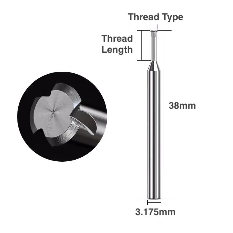 De M3 Tap (Ø 2.4 mm) x 9mm Makera Carvera is een CNC-raadwerktuig ontworpen voor kleine schroeven en schroefaccessoires. Met een geometrie die is geoptimaliseerd voor het creëren van nauwkeurige interne schroefdraad op micro metalen of kunststof onderdelen, past het eenvoudig in de spil dankzij de 3,175 mm (1/8") schacht.