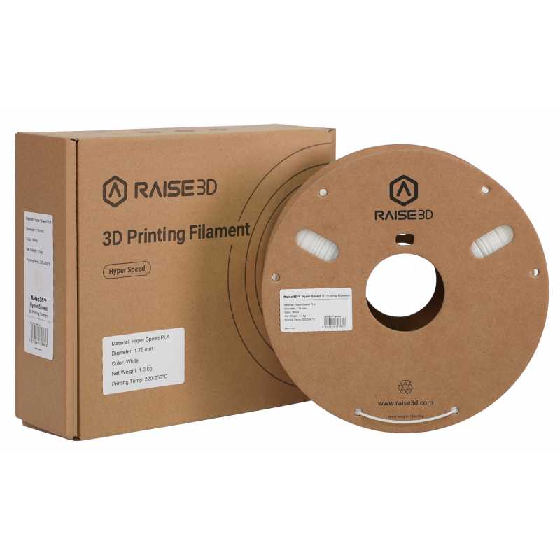 Met zijn geoptimaliseerde chemische formule en aangepaste vloeibaarheid (Melt Flow Index 4,5 g/10 min) kan Raise3D PLA Hyper Speed snel smelten in de hotend en veel sneller afkoelen na extrusie. Hierdoor is de oppervlaktekwaliteit van prints met Hyper Speed filamenten glad en blijven de meeste details nauwkeurig. Bovendien biedt PLA Hyper Speed dankzij de optimalisatie van het moleculair gewicht een uitstekende laaghechting en sterkte over de lengte. PLA Hyper Speed is daarom geschikt voor modellen, conceptfiguren, prototyping en meer.