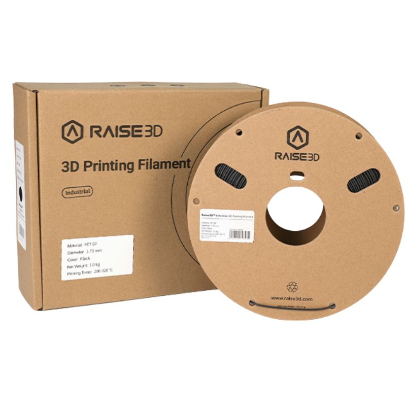 Het Raise3D Industrial PET GF Zwart filament is een composietmateriaal op PET-basis (polyethyleentereftalaat) versterkt met glasvezels.