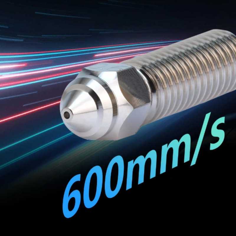 Deze nozzle van koperlegering zorgt voor hoge thermische geleidbaarheid en hoge doorstroming voor prints met hoge snelheid.