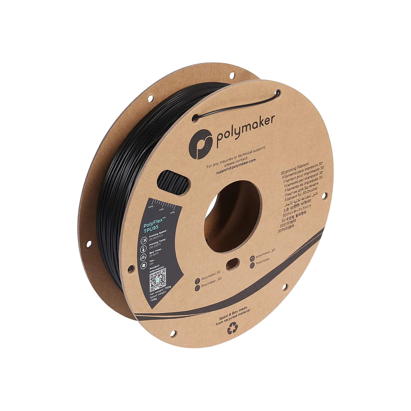 PolyFlex TPU-90A Zwart van Polymaker is een flexibel, sterk en UV-bestendig filament. Eenvoudig te printen en ideaal voor elastische toepassingen.