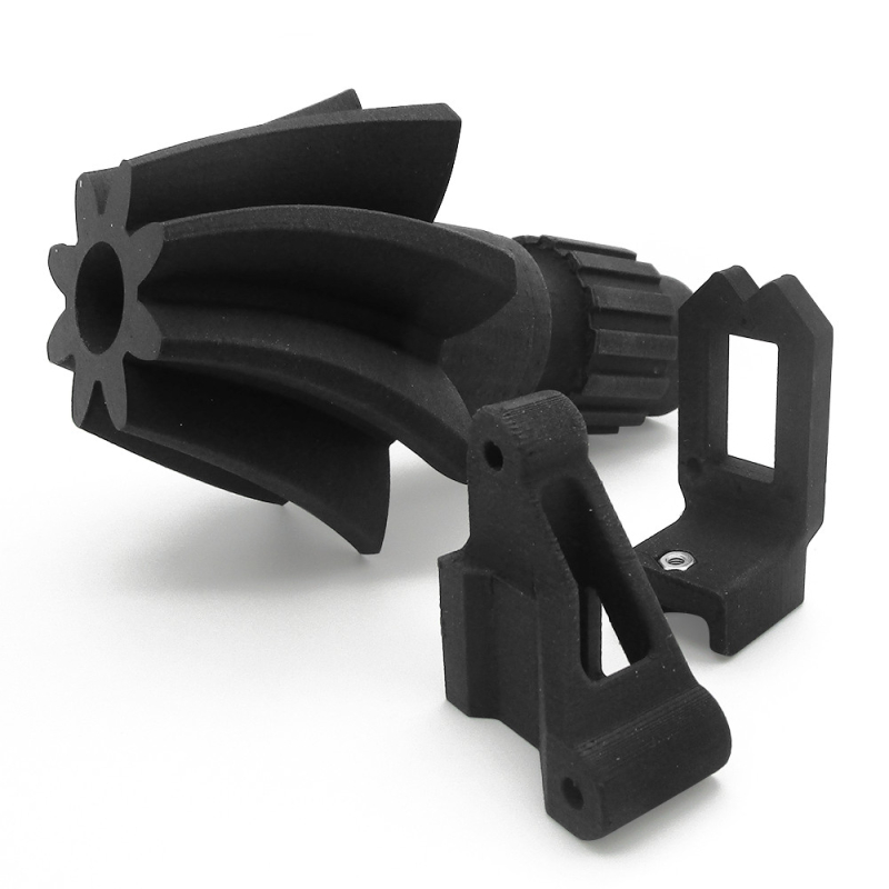 Het polyamide (nylon) filament maakt de productie van onderdelen tot 100°C mogelijk, printbaar zonder verwarmde behuizing, geschikt voor gevoelige omgevingen.