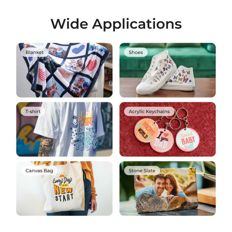 Dit alles-in-één kit stelt je in staat om thermische overbrengingen met verhoogde precisie, snelheid en veiligheid uit te voeren, wat een optimale ervaring biedt voor het personaliseren van je textielcreaties.