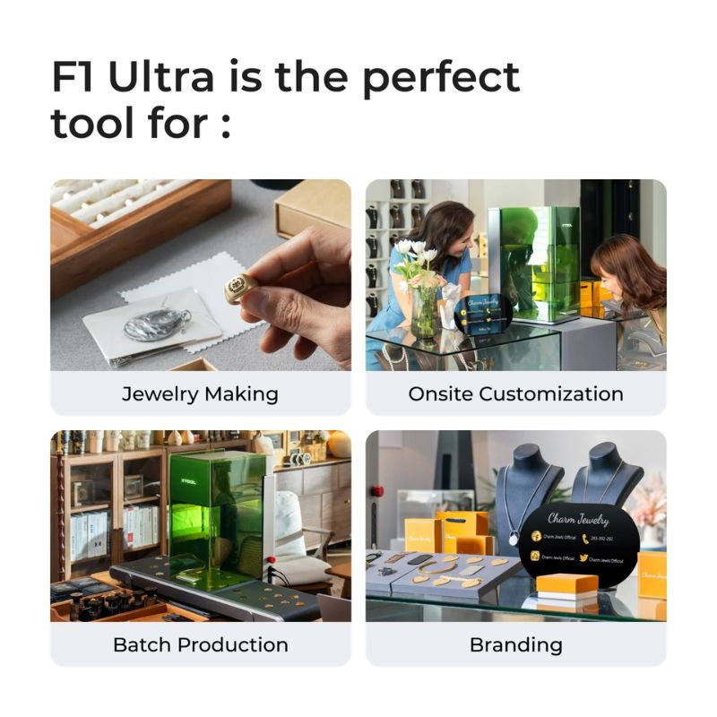 Het xTool F1 Ultra + Transportband pakket is een professionele dual-source 20 W lasersysteem met een geautomatiseerde transportband.